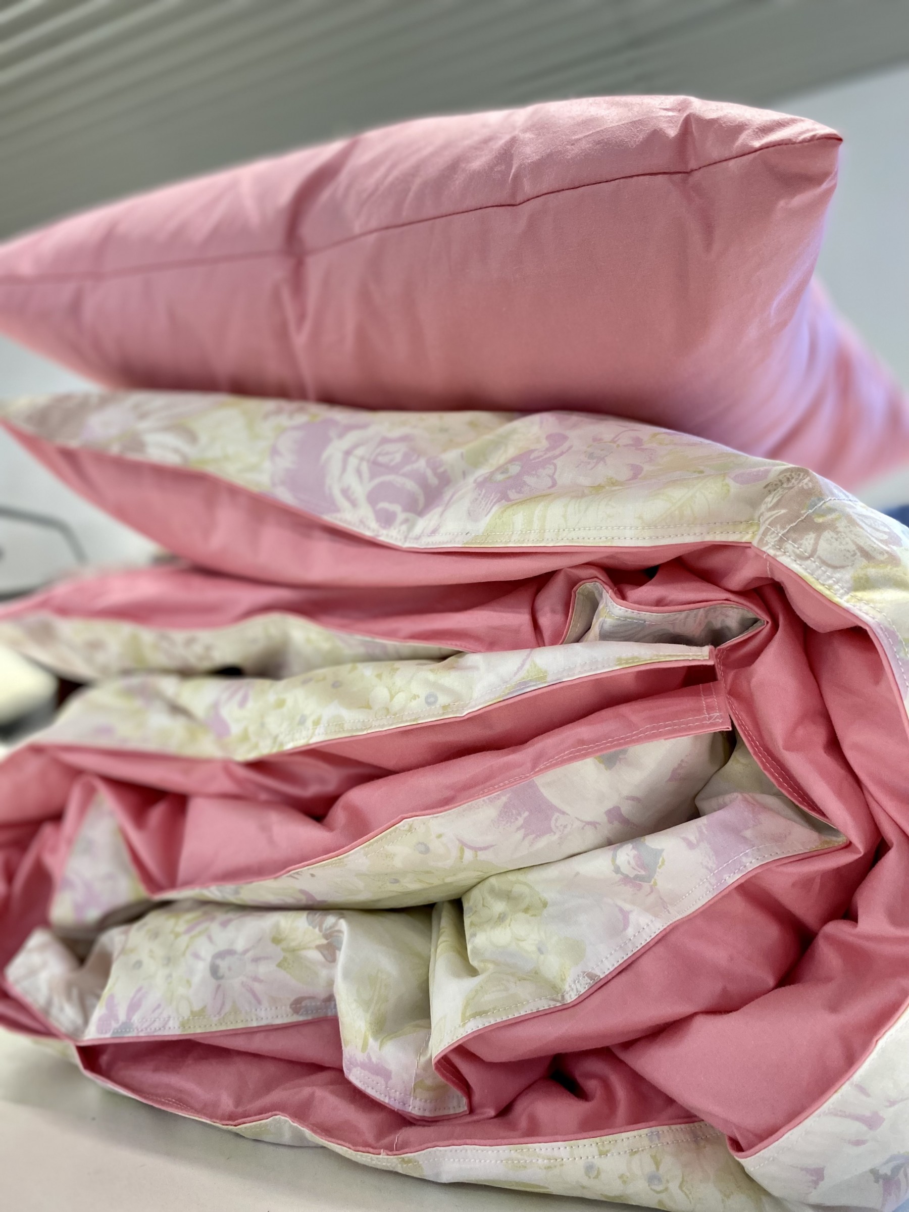 - PINK boja inleta u kombinaciji sa šarenim cvjetnim dezenom